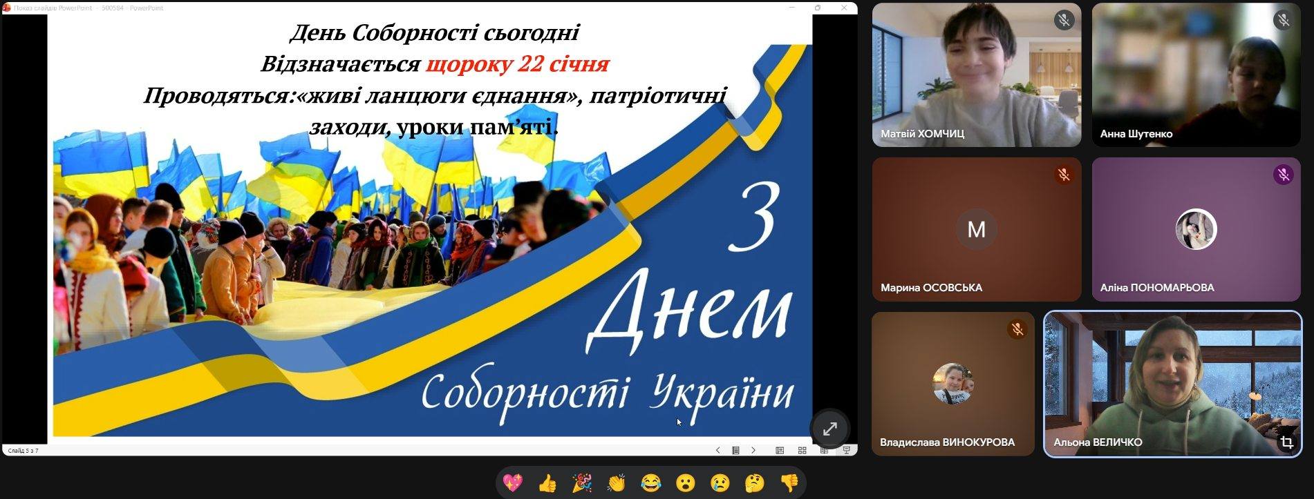 Сьогодні для учнів 4 класу, вихованців гуртка "Етнографічне краєзнавство", проведена виховна година, присвячена одній з найважливіших дат в історії нашої держави. Ми згадали події 1919 року, коли на Софійському майдані в Києві відбулося проголошення Акта Злуки УНР та ЗУНР.